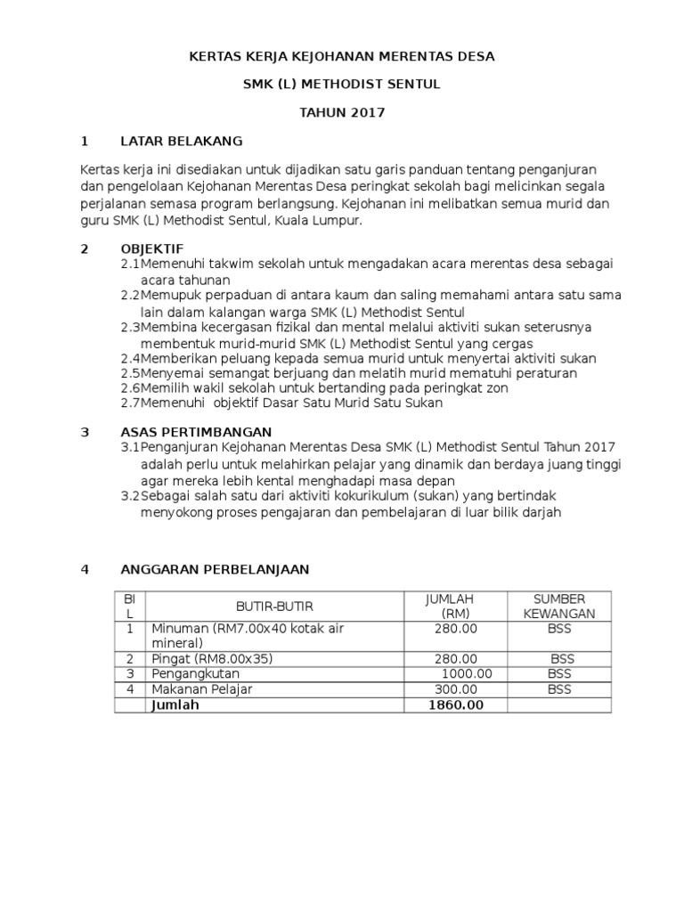 Kertas Kerja Kejohanan Merentas Desa 2017 Pdf